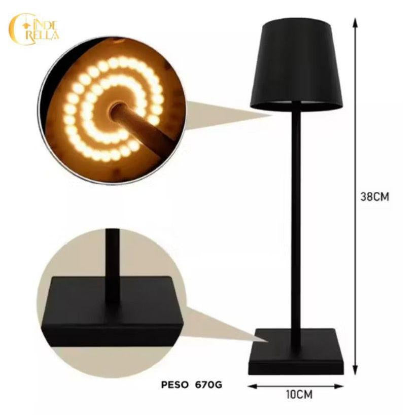 Com bateria recarregável, você pode usar seu Abajur Luce em qualquer lugar — do quarto à varanda, da mesa de trabalho ao jantar especial.